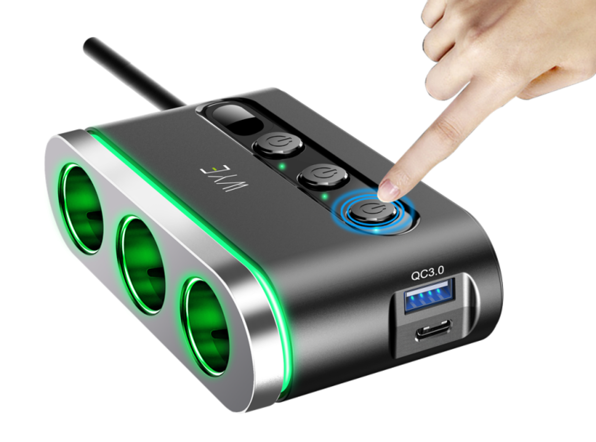 120W In-Car Charger with 3 x Cigarette Lighter Sockets + USB-A & USB-C Ports